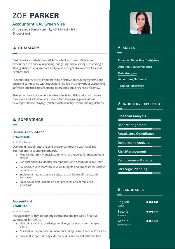 The demand for skilled Accountants in the UAE is on the rise, with salaries ranging from AED 10,000 to AED 20,000 per month depending on experience and qualifications. The UAE Green Visa allows you to tap into this lucrative job market, making it essential to have a standout resume that highlights your capabilities and aligns with employer expectations.
