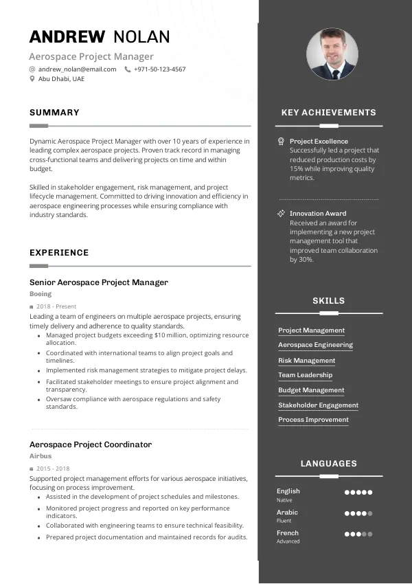 Resume Examples for Aerospace Project Managers