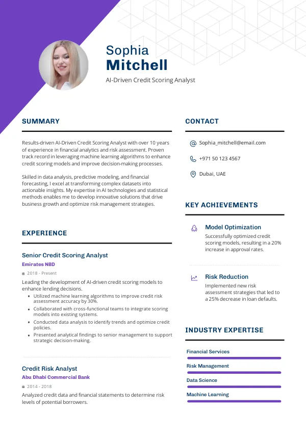 - Achievement: Developed an AI model that improved credit scoring accuracy by 30%, showcasing alignment with evolving role expectations.