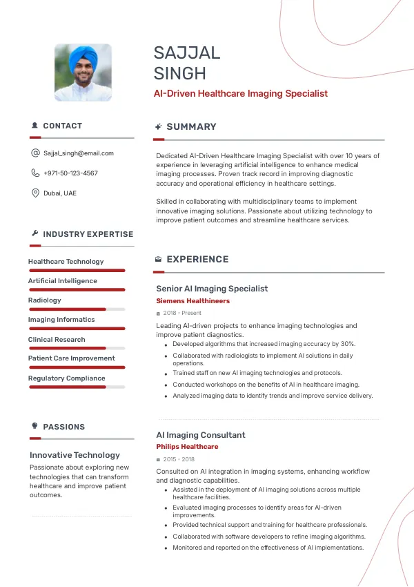 Resume Examples for AI-Driven Healthcare Imaging Specialists