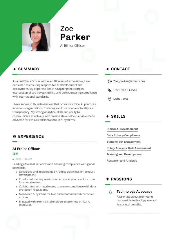 - Achievement: Developed a comprehensive ethical AI framework that improved compliance rates by 30%, demonstrating impact and alignment with long-term residency and Golden Visa considerations.