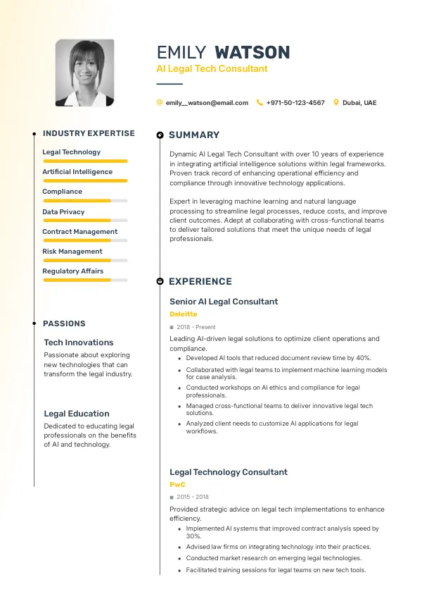 Enhance your resume to reflect the evolving role of AI Legal Tech Consultant in 2026.