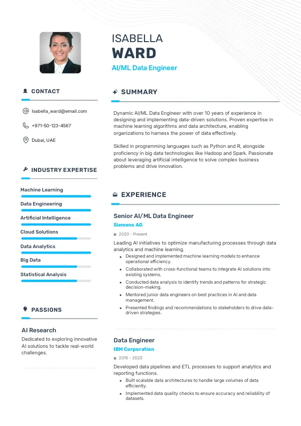 In 2026, AI/ML Data Engineers will take on expanded responsibilities, including the integration of AI tools for predictive analytics and the management of complex data ecosystems. The role will increasingly require collaboration with data scientists and business analysts to ensure that data solutions align with strategic goals. Highlighting these evolving responsibilities in your TrueCV resume will demonstrate your readiness for the future.