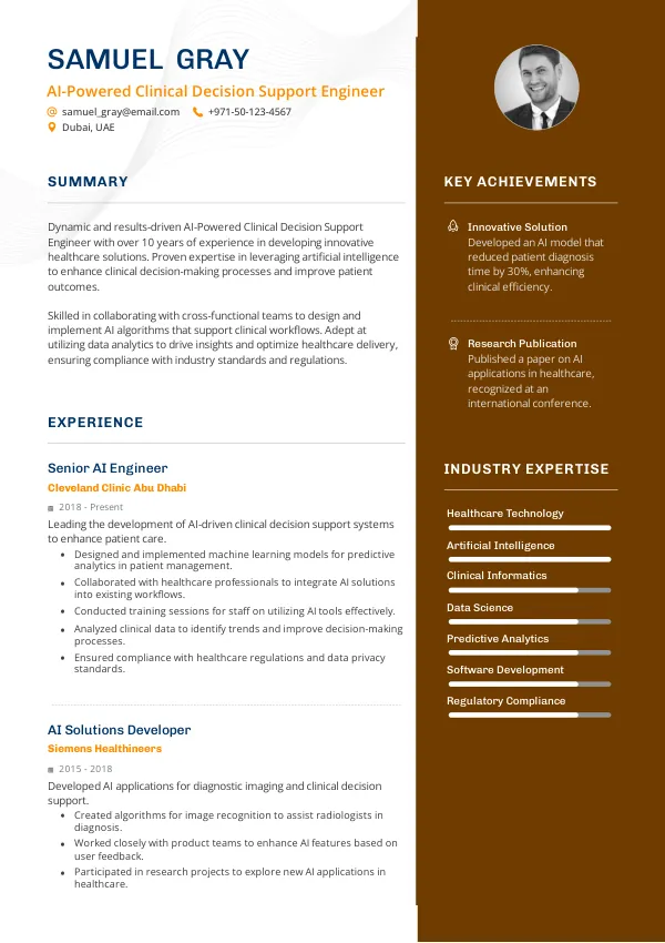 Resume Examples for AI-Powered Clinical Decision Support Engineers