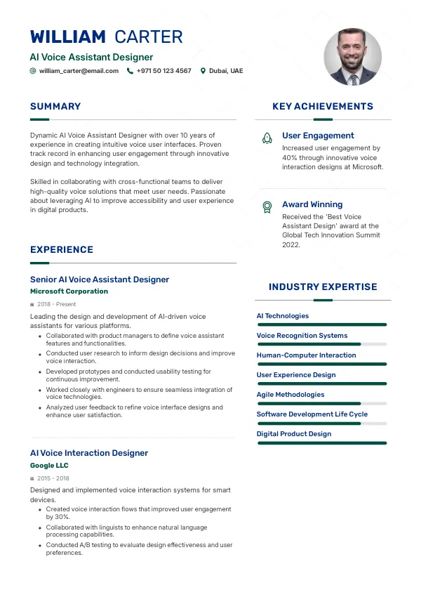 Build My AI Voice Assistant Designer ResumeEvolving Responsibilities of AI Voice Assistant Designers