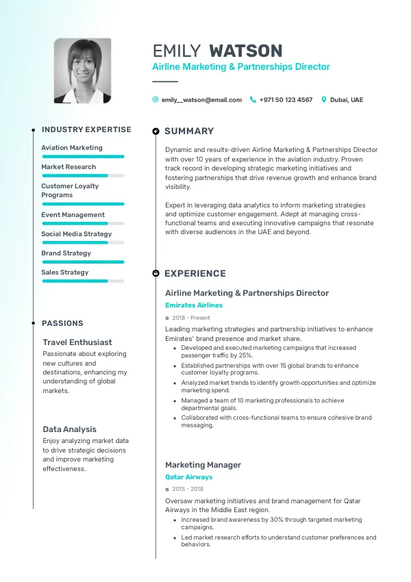 Position yourself for success in the evolving aviation landscape with a TrueCV-optimized resume tailored to the Airline Marketing & Partnerships Director role.