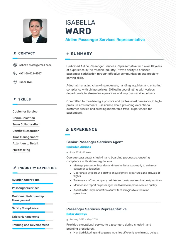Resume Examples for Airline Passenger Services Representatives