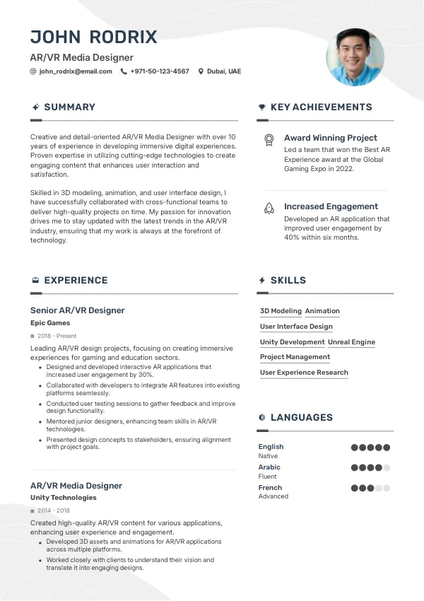 In 2026, proficiency in emerging tools such as Unity, Unreal Engine, and AI-based design software will be critical for AR/VR Media Designers. These skills not only enhance employability but also align with the expectations of employers who are looking for candidates capable of driving innovation. A resume that effectively showcases these competencies can enhance your profile for Golden Visa consideration, reflecting your potential economic contribution.