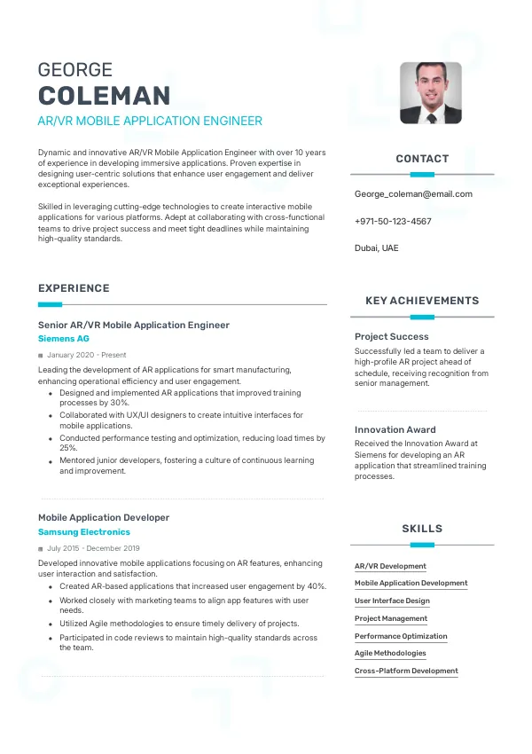 Resume Examples for AR/VR Mobile Application Engineers