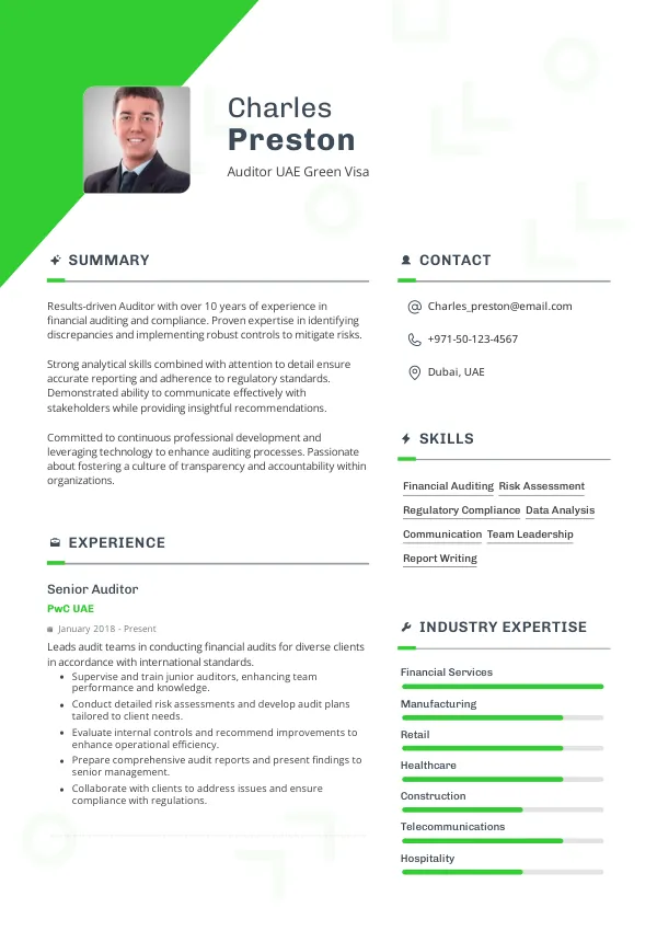 Our resume service guarantees a 4–6 hour turnaround time for your Auditor – UAE Green Visa Resume.
