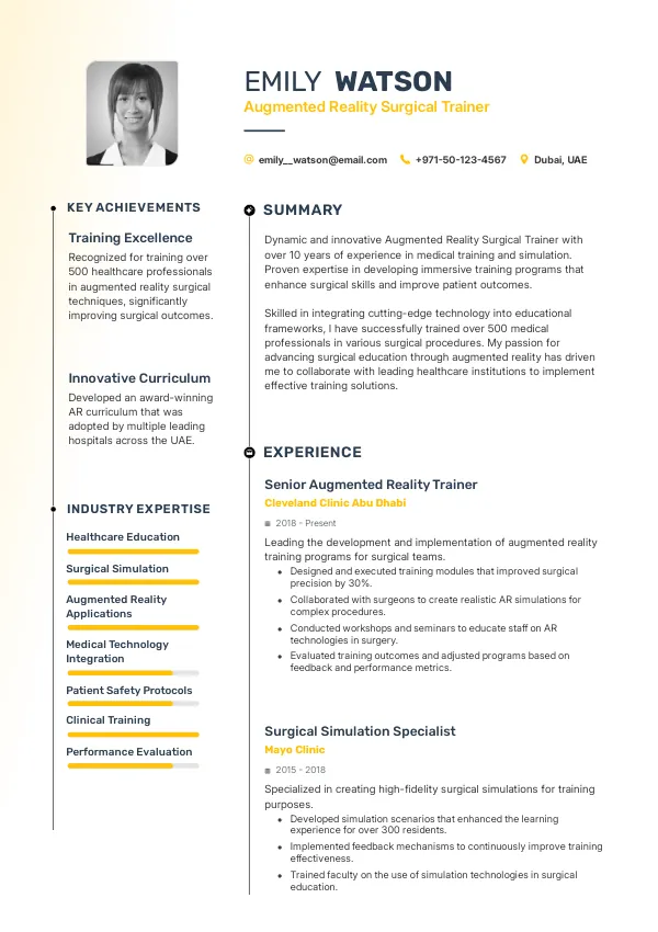 Resume Examples for Augmented Reality Surgical Trainers