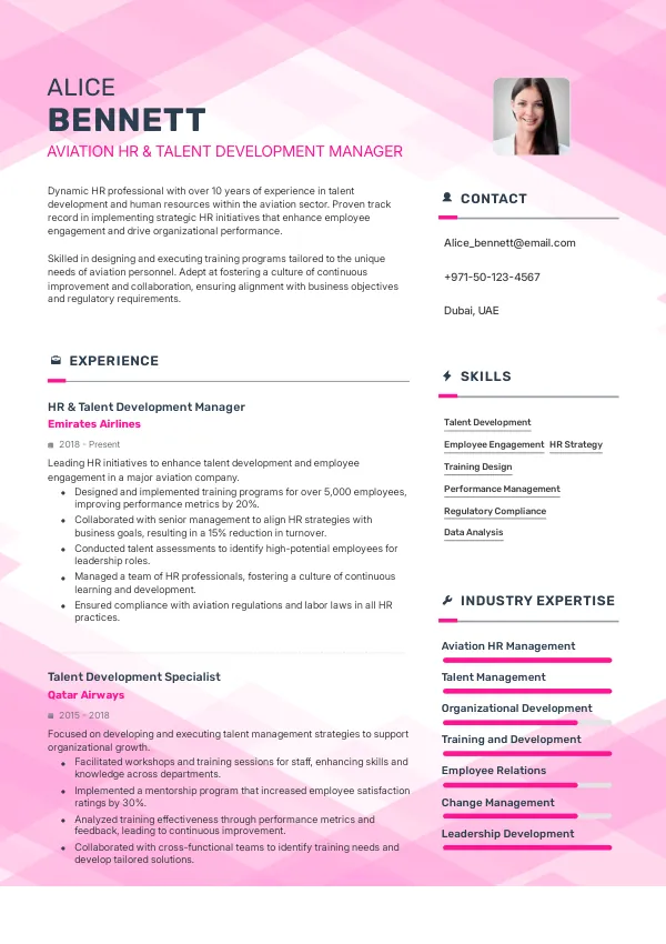 Resume Examples for Aviation HR & Talent Development Managers