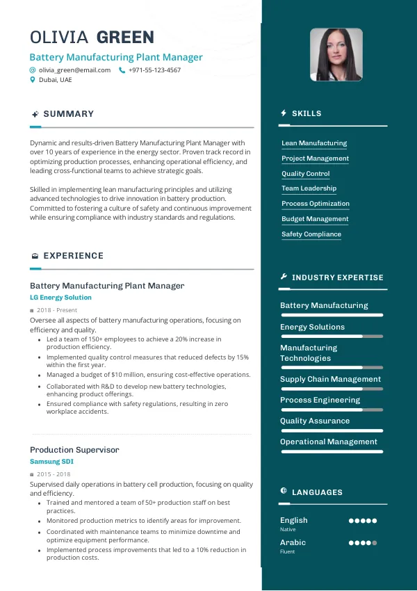 Enhance your resume to reflect the latest skills and technologies for Battery Manufacturing Plant Managers.