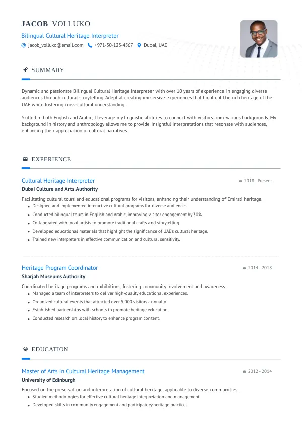 Resume Examples for Bilingual Cultural Heritage Interpreters