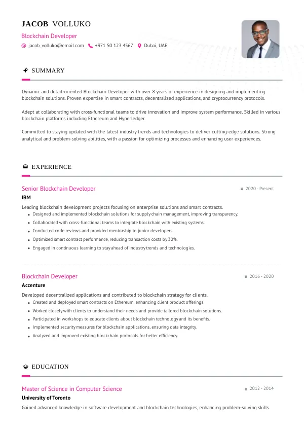 Resume Examples for Blockchain Developers