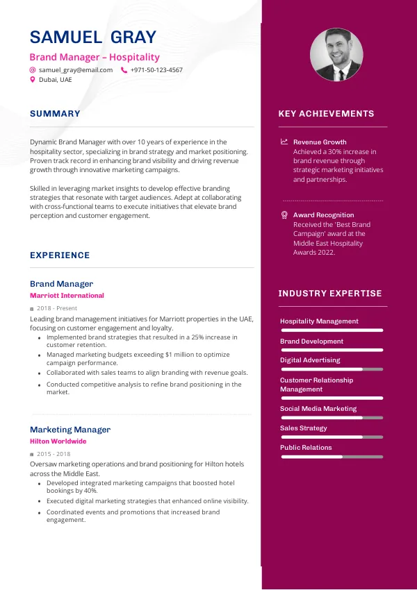 In 2026, the role of Brand Manager in the Hospitality industry in the UAE will expand significantly, focusing on digital engagement and personalized guest experiences. With the rise of AI-driven analytics and customer relationship management systems, Brand Managers will need to adapt to new technologies that enhance brand visibility and customer loyalty. A TrueCV-optimized resume will highlight your adaptability to these changes, making you a more attractive candidate.
