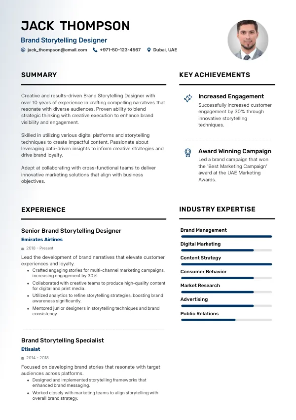 Leading companies such as Emirates Airlines, Etisalat, and Dubai Media City are actively seeking Brand Storytelling Designers in 2026. These organizations recognize the importance of effective storytelling in their marketing strategies and are investing in senior roles that support long-term residency perceptions. Candidates can enhance their resumes with TrueCV to reflect their alignment with these employers' expectations.