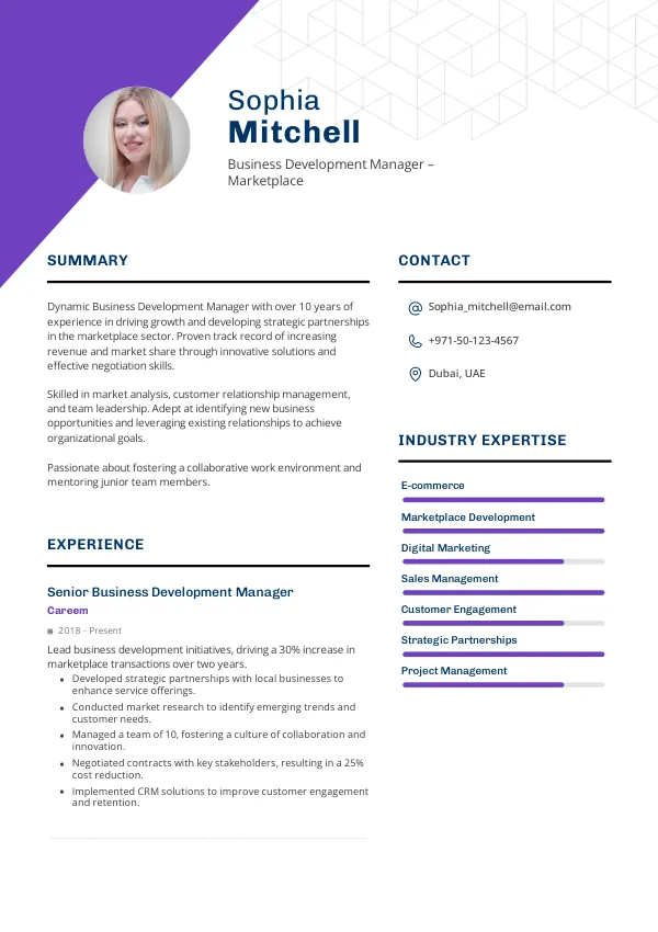 In 2026, the role of Business Development Manager in the UAE's e-commerce marketplace is set to evolve significantly. With the rise of AI-driven analytics and customer engagement platforms, professionals in this role will need to leverage data insights to drive strategic partnerships and sales growth. TrueCV can help you align your resume with these evolving expectations, ensuring you stand out in a competitive job market.