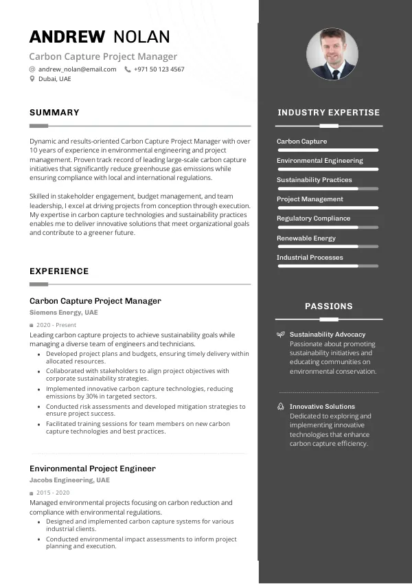Resume Examples for Carbon Capture Project Managers
