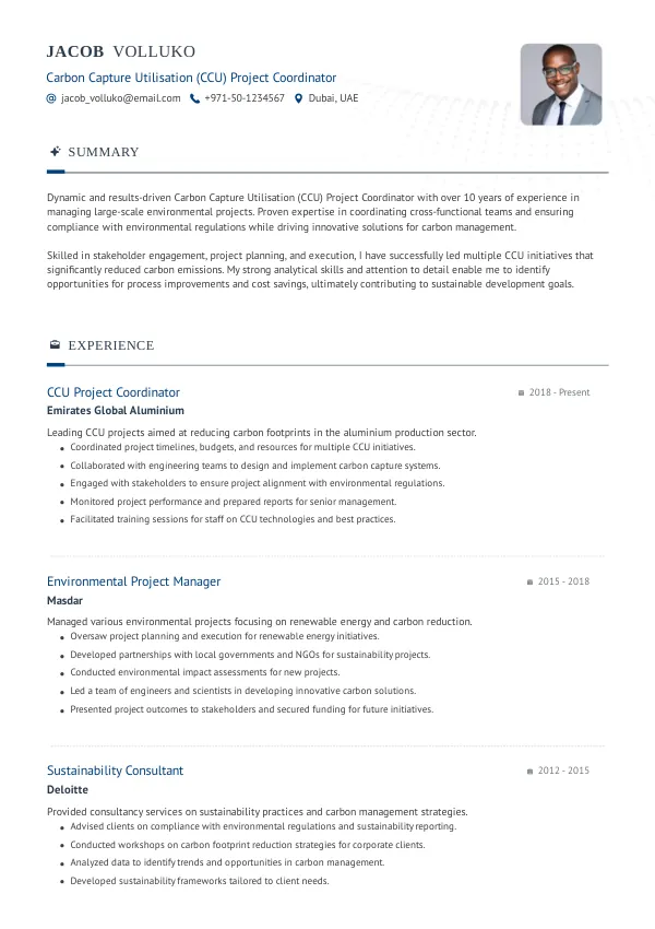 Build My Carbon Capture Utilisation (CCU) Project Coordinator ResumeEvolving Responsibilities of CCU Project Coordinators