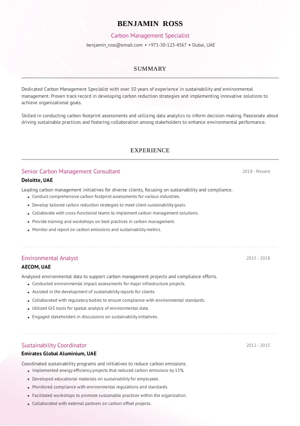 The demand for Carbon Management Specialists is surging in 2026 due to new UAE regulations aimed at achieving net-zero emissions by 2050. This regulatory environment is pushing companies to invest in carbon management solutions. Additionally, the rise of green finance initiatives is creating a market for specialists who can navigate compliance and sustainability metrics. A TrueCV-optimized resume will ensure candidates are recognized for their relevant experience and skills in this growing field.