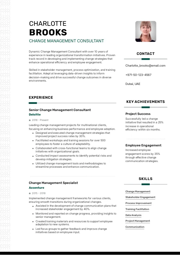 With the evolving landscape of consulting in the UAE, a TrueCV-optimized resume will position you for success in securing a Change Management Consultant role. Stay ahead of the competition and align your skills with market demands.