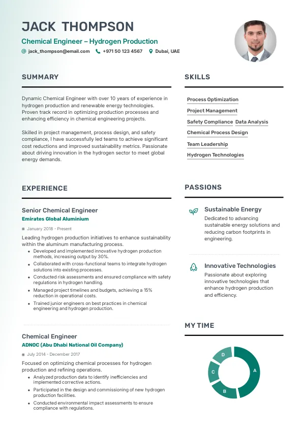 As the demand for Chemical Engineers in Hydrogen Production grows, ensure your resume reflects the latest industry standards and expectations with TrueCV.