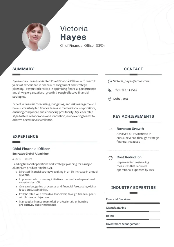 The Chief Financial Officer (CFO) role in 2026 is evolving with the integration of advanced financial technologies like AI-driven analytics and blockchain. This evolution enhances the strategic importance of CFOs in driving business growth and sustainability. A well-crafted resume that highlights your leadership and financial acumen can strengthen your seniority signaling and visibility of impact, which are crucial for Golden Visa consideration.