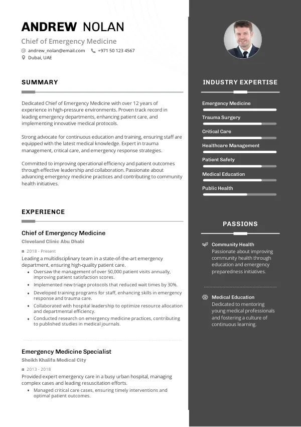 Prepare for a rewarding career as Chief of Emergency Medicine in 2026 with TrueCV. Position your resume to reflect your seniority and contributions, enhancing your potential for long-term residency and Golden Visa pathways.