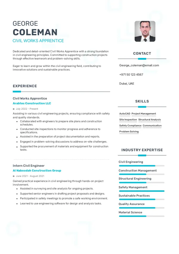 The construction industry in the UAE is expected to maintain a steady demand for Civil Works Apprentices, providing a stable career path. The government's focus on infrastructure development will support ongoing hiring, making this an attractive field for aspiring professionals. A well-crafted resume can help candidates navigate the visa process and secure employment in this thriving sector.