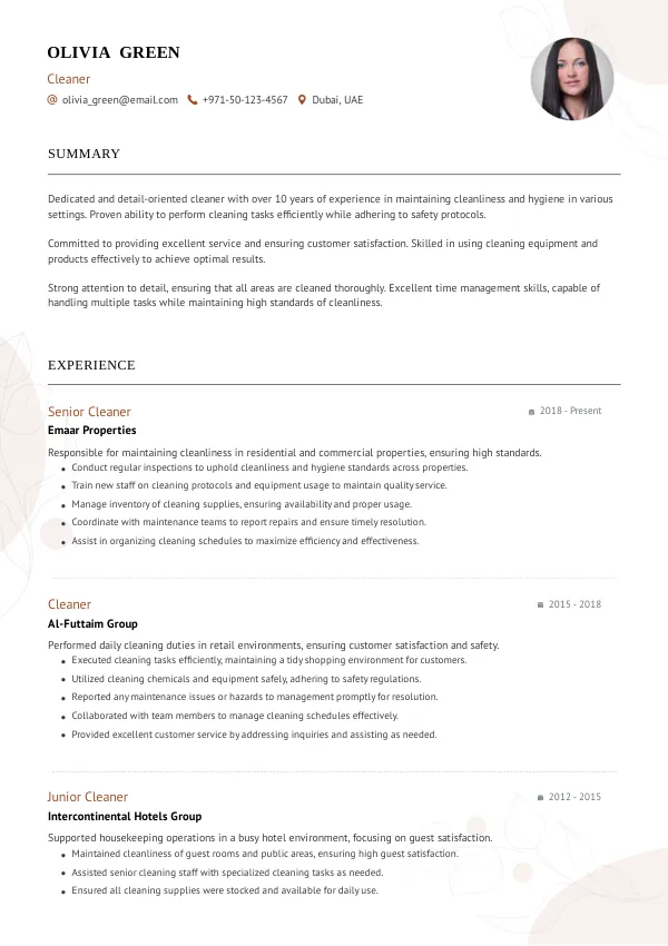 As the UAE continues to grow, especially in hospitality and tourism, the demand for skilled Cleaners remains high. A Truecv-optimized resume positions you favorably against competitors.