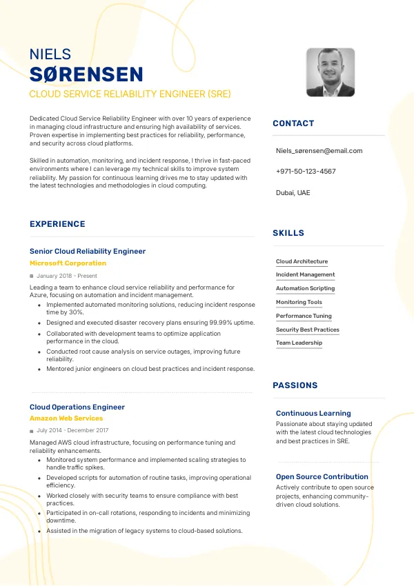 Resume Examples for Cloud Service Reliability Engineers