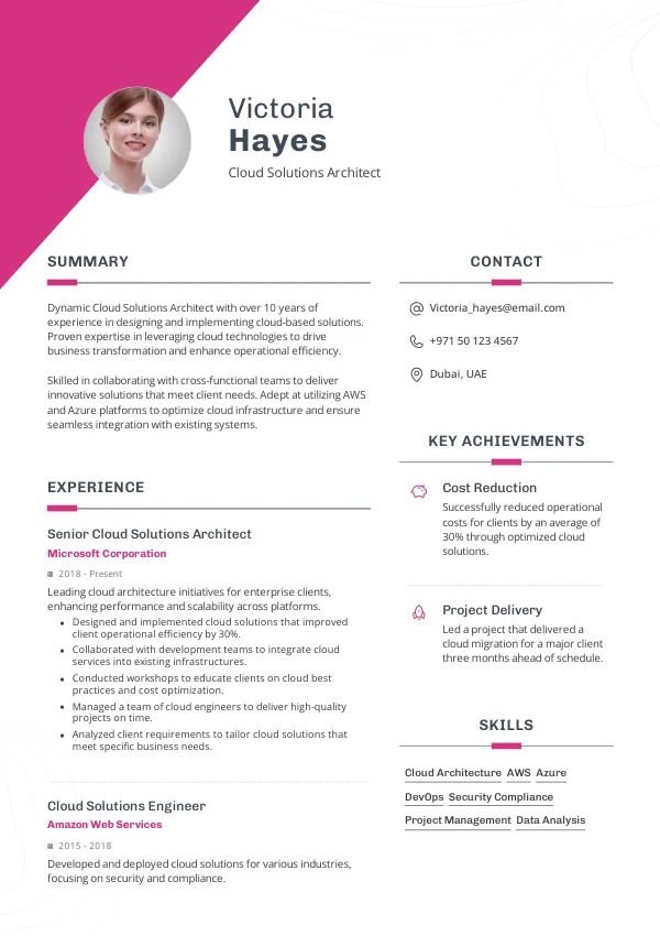 Resume Examples for Cloud Solutions Architects