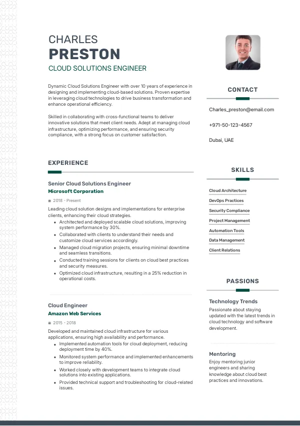 Resume Examples for Cloud Solutions Engineers