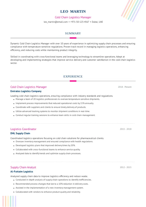 With the evolving landscape of supply chain management in the UAE, a TrueCV-optimized resume can significantly enhance your chances of success in securing a Cold Chain Logistics Manager role.