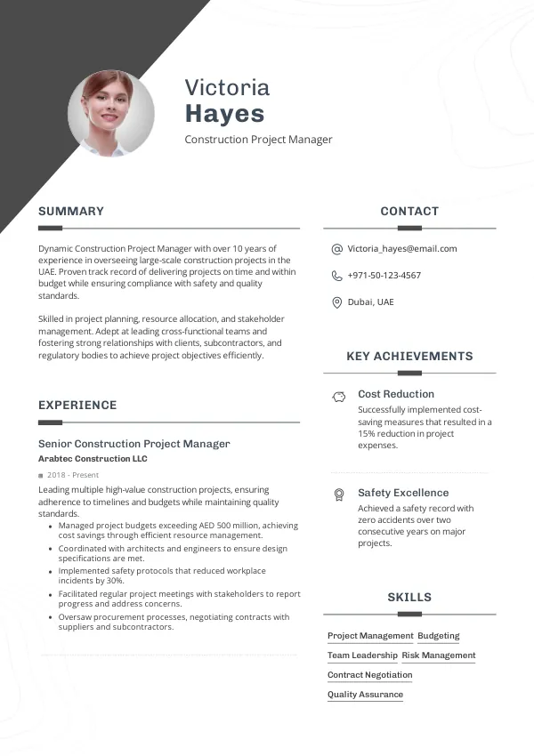 The construction sector in the UAE is expected to remain robust in 2026, providing a stable job market for Construction Project Managers. With ongoing government projects and private sector investments, candidates can expect a favorable employment landscape. A resume that emphasizes relevant experience and adaptability will be crucial for securing positions in this dynamic environment.