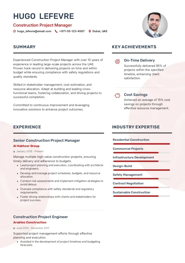 As a Construction Project Manager in the UAE, your expertise is critical in overseeing projects from inception to completion. With a booming construction industry, having a well-crafted CV & Resume can set you apart from the competition.
