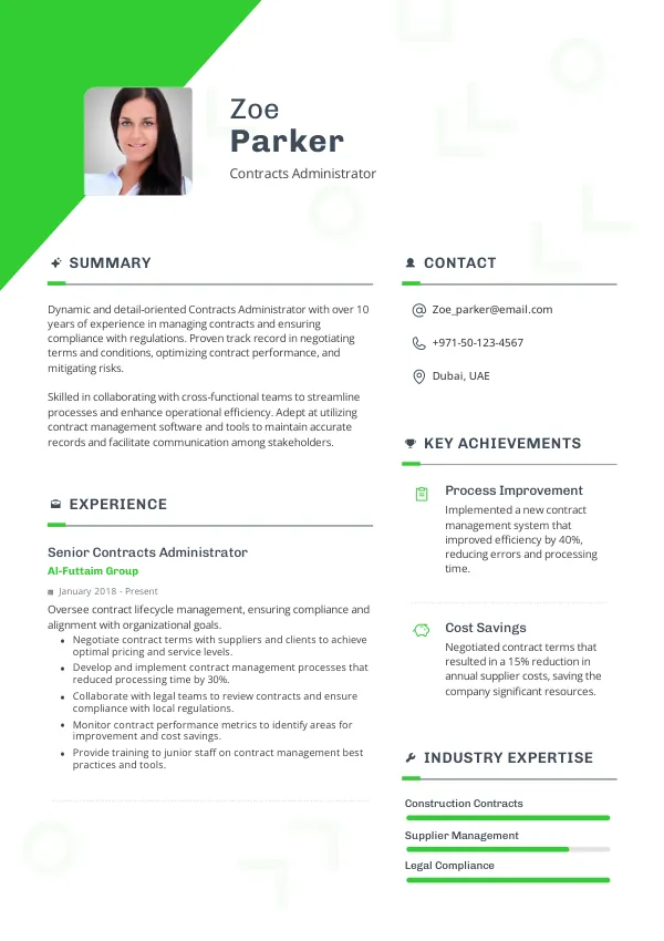 In 2026, the role of Contracts Administrator will be pivotal in the UAE construction industry. A TrueCV-optimized resume will help you stand out and align with the evolving expectations of employers.