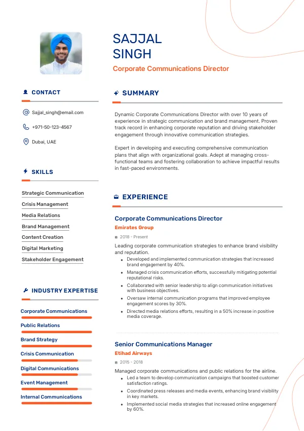 - Achievement: Developed a comprehensive communication strategy that increased brand engagement by 40%, demonstrating impact and aligning with Golden Visa considerations for long-term residency.