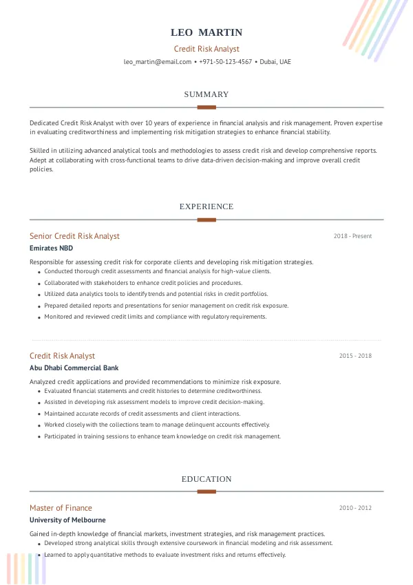 Resume Examples for Credit Risk Analysts