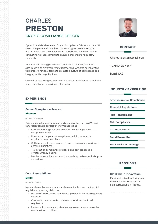 Resume Examples for Crypto Compliance Officers