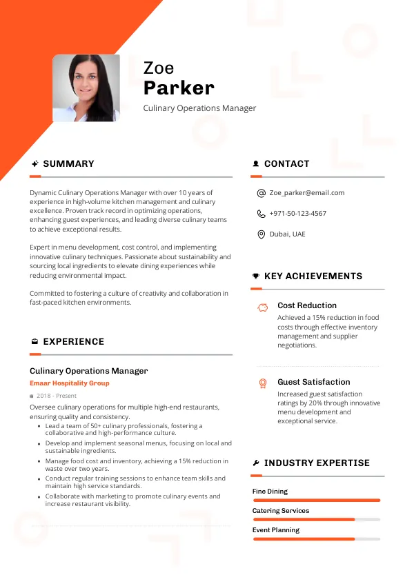 The UAE's hospitality sector is poised for growth, providing strong career stability for Culinary Operations Managers. The government's focus on tourism and culinary excellence will continue to attract investments, ensuring a steady demand for skilled professionals. Highlighting your adaptability and readiness for this evolving market in your TrueCV can enhance your employability.