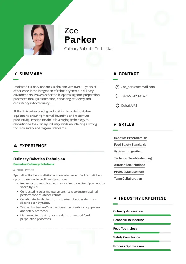 Build My Culinary Robotics Technician ResumeResponsibilities of Culinary Robotics Technicians in 2026