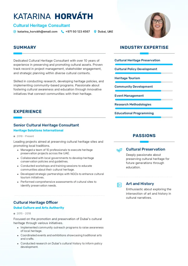 Resume Examples for Cultural Heritage Consultants