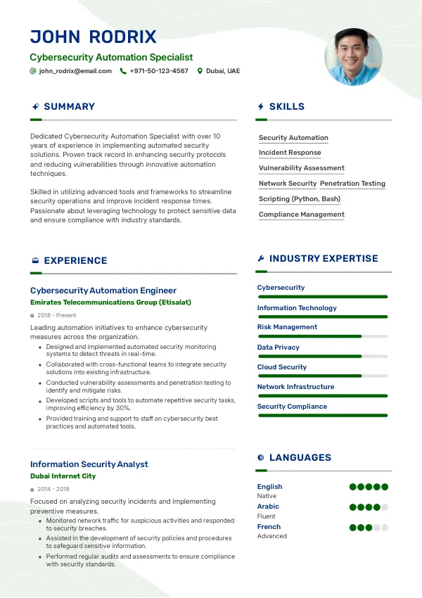 Resume Examples for Cybersecurity Automation Specialists