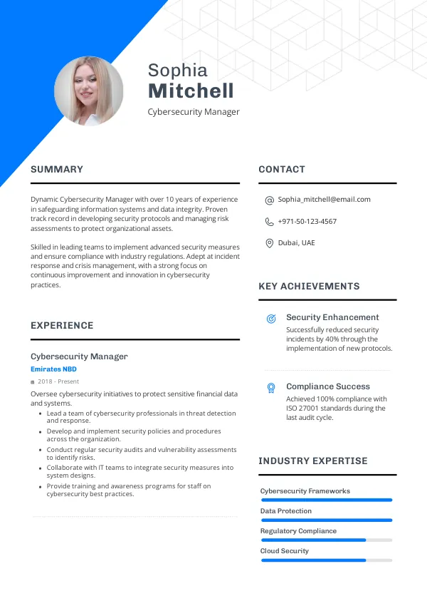 The demand for Cybersecurity Managers in 2026 is driven by the rapid adoption of advanced technologies such as AI-driven security solutions and the increasing sophistication of cyber threats. As businesses in the UAE expand their digital footprint, they require robust cybersecurity frameworks to protect sensitive data. TrueCV can assist candidates in aligning their resumes with these emerging demands.