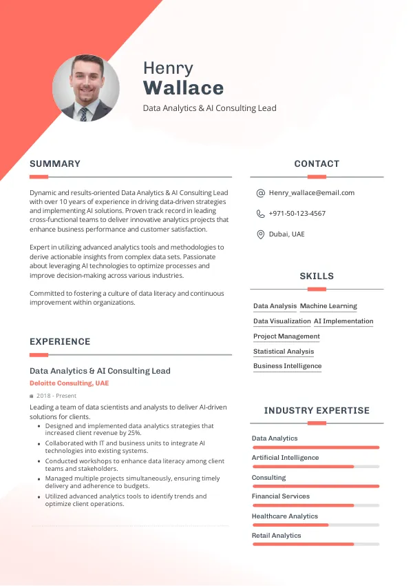Resume Examples for Data Analytics & AI Consulting Lead