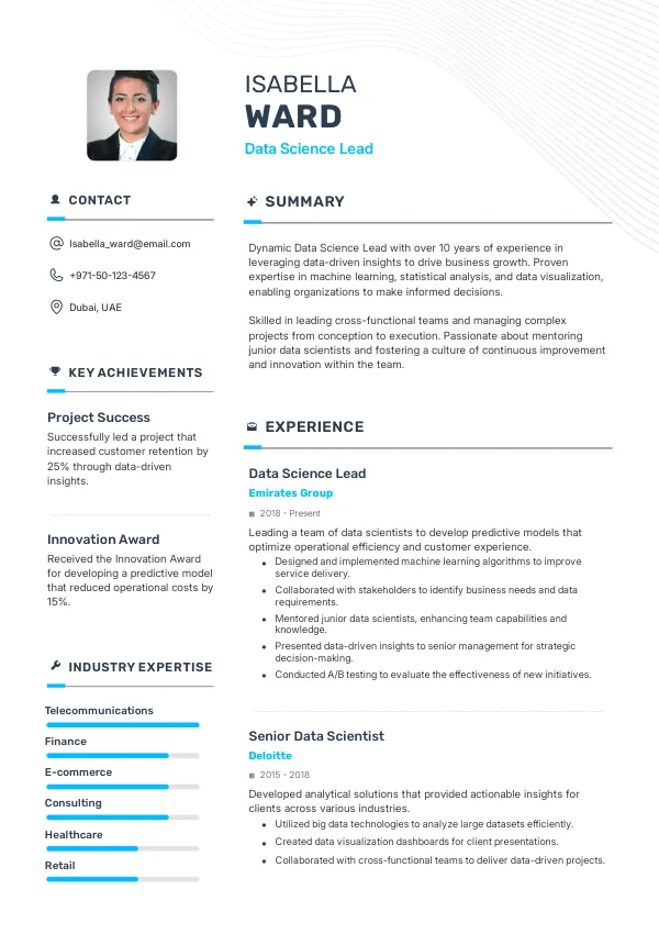 The UAE's commitment to becoming a tech hub enhances career stability for Data Science Leads. The government's focus on attracting skilled professionals through favorable visa policies will further support job security in this field. A TrueCV-optimized resume can effectively communicate your qualifications and readiness to contribute to this dynamic market.