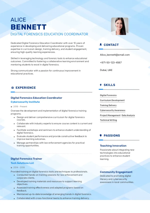 As the role evolves in 2026, Digital Forensics Education Coordinators will be responsible for integrating cutting-edge technologies like AI and machine learning into their curricula. This shift will require them to collaborate with IT departments and industry experts to ensure that training programs are relevant and up-to-date. A TrueCV-optimized resume will effectively communicate your experience with these technologies, making you stand out in the hiring process.