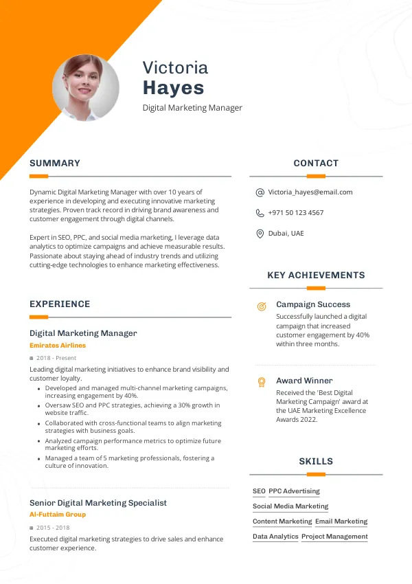 The UAE's commitment to becoming a digital hub will create stable career opportunities for Digital Marketing Managers in 2026. Companies are likely to seek international talent to fill these roles, enhancing visa opportunities for qualified candidates. A TrueCV-optimized resume can position you as a strong candidate in this competitive market.